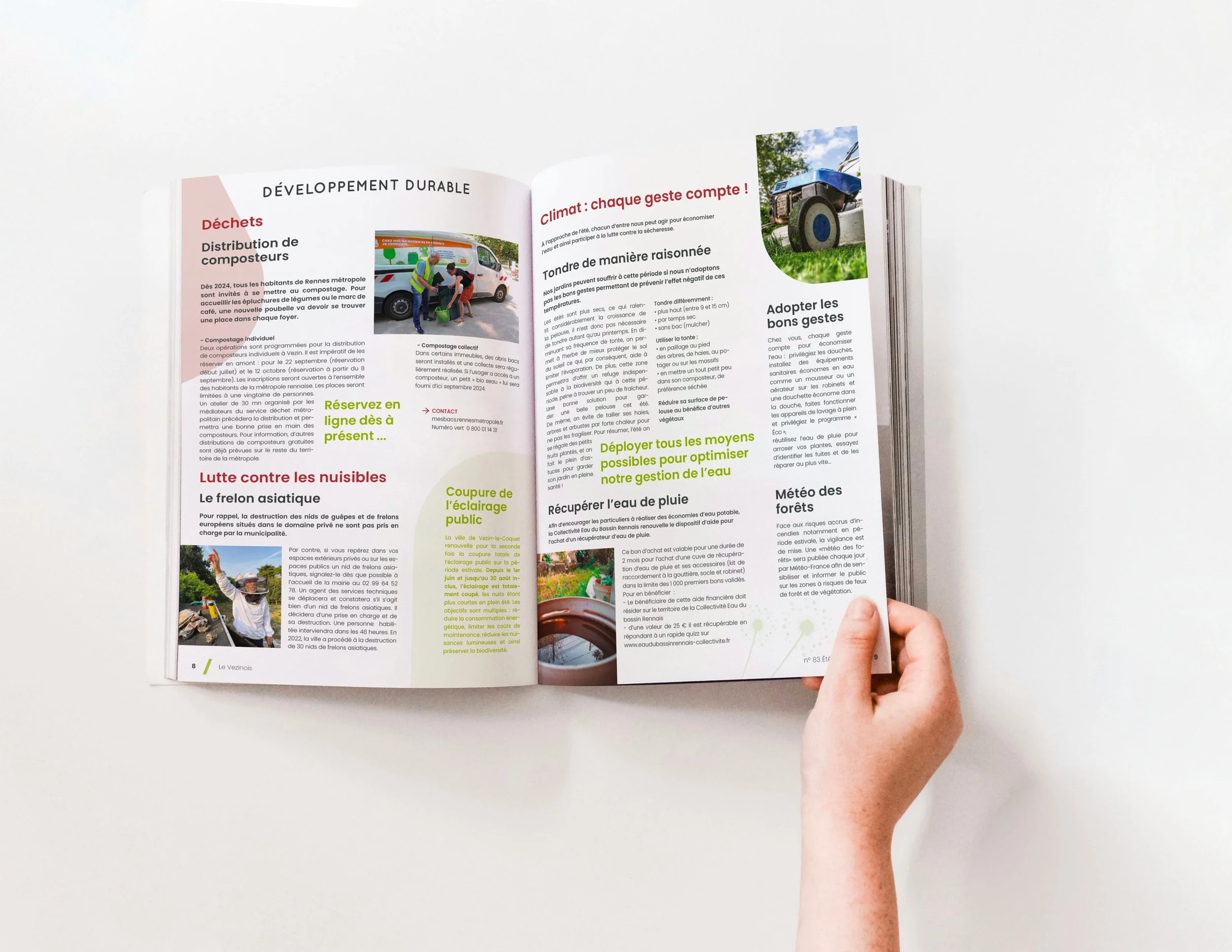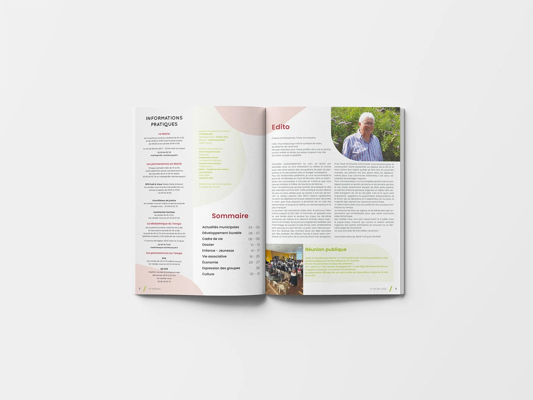 Modernisation de la direction artistique éditoriale du magazine municipal de la ville de Vezin-le-Coquet tout en respectant l'identité de la commune. La refonte s'appuie sur les codes chromatiques de la ville et une nouvelle grille de mise en page conçue pour clarifier la hiérarchie de l’information.